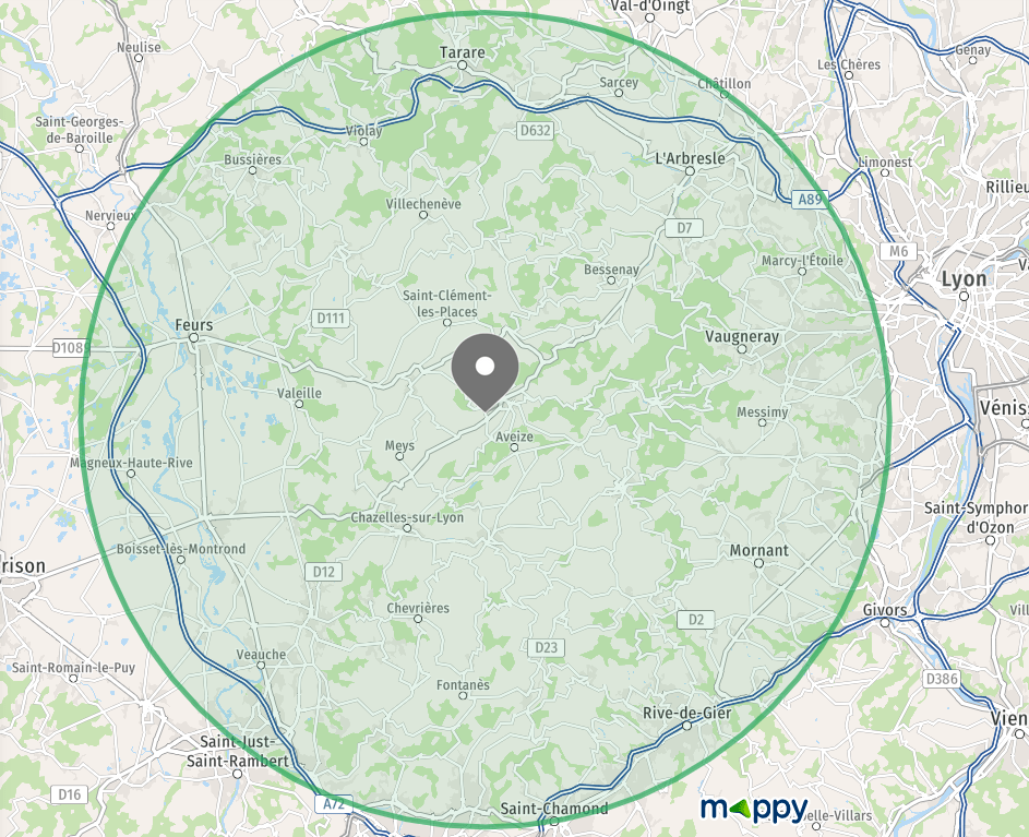 Secteurs : monts du lyonnais et plaine du Forez, dans un rayon de 25km autour de Souzy (69).